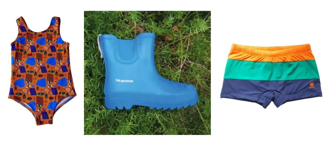 Tem para meninos e para meninas, sungas, bermudas, maiôs, biquínis e até ponchos atoalhados, que além de proteger do vento, ainda servem como saída de praia.