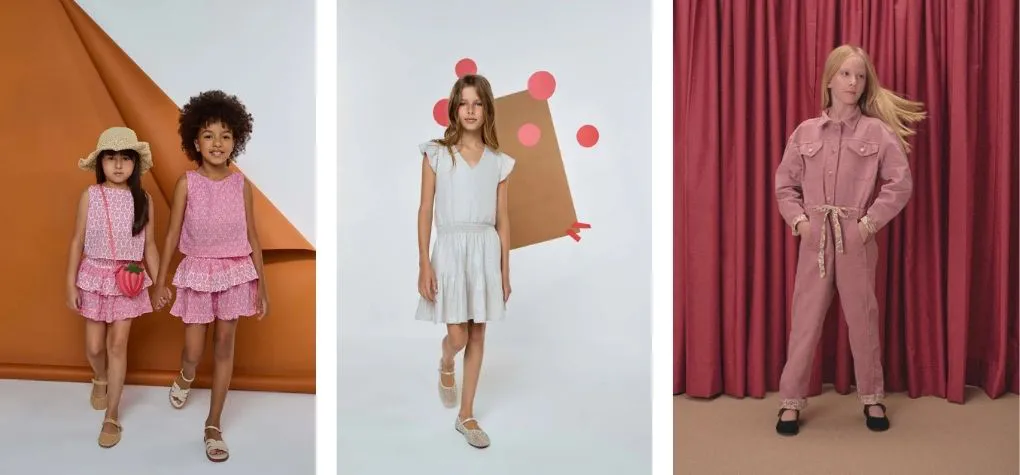 A Mila Milou, focada em roupas para meninas, traz bastante das tendências da moda adulta para o universo infantil, e mesmo assim, deixando as roupinhas com cara de criança.