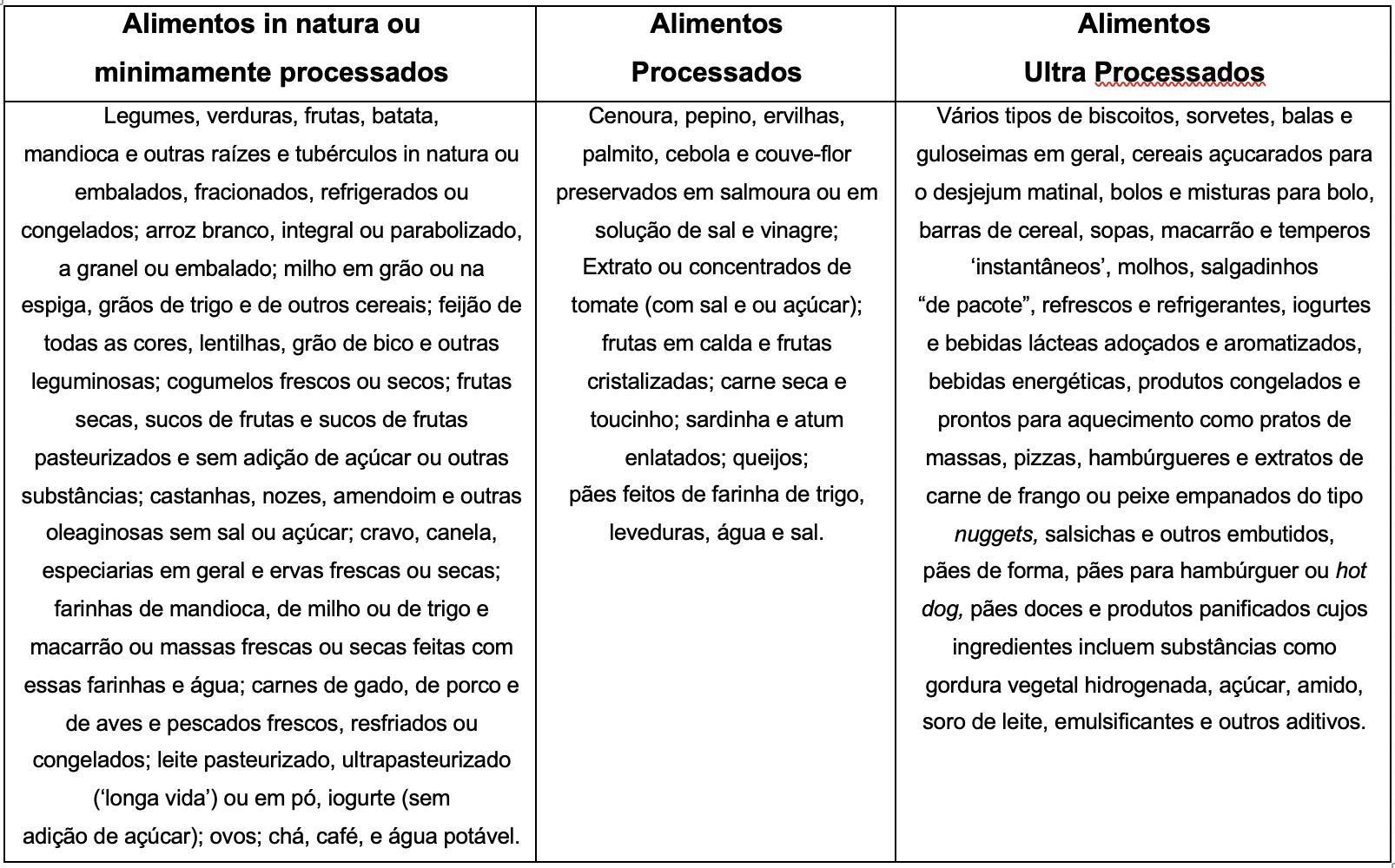 Quadro 1: Classificação dos alimentos de acordo com o grau de processamento