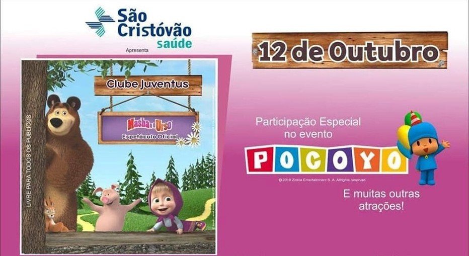 No dia 12 de outubro o Salão Grená do Clube Atlético Juventus vai abrir suas portas para sócios e não sócios, convidando a família toda para um dia de muita comemoração e brincadeira com Masha e o Urso, os principais super heróis da Marvel e personagens exclusivos da Disney!