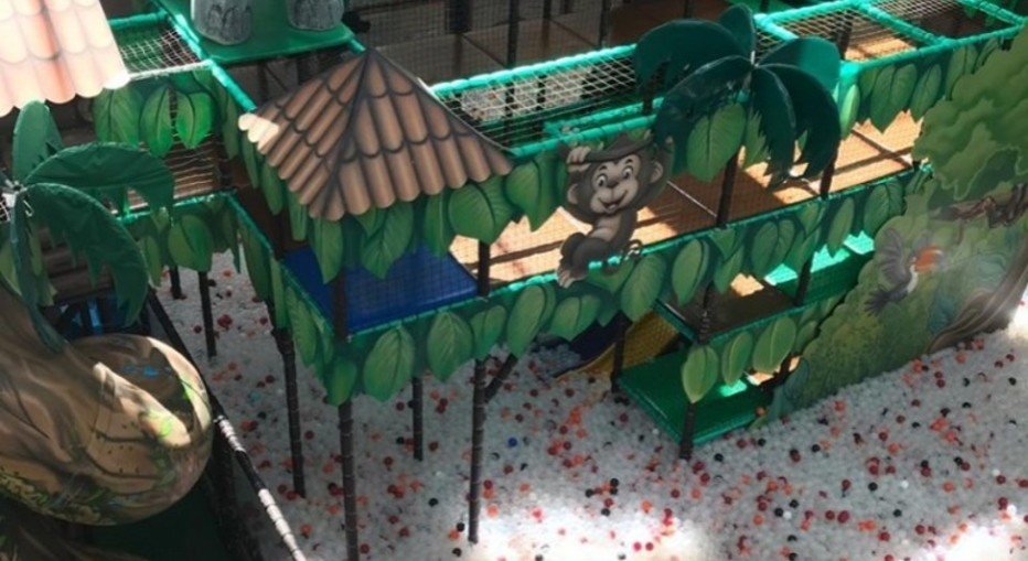 SELVA MÁGICA numa piscina enorme de bolinhas brancas no DF Plaza Shopping.