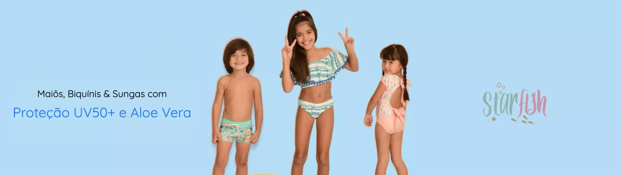 A Starfish é uma moda praia infantil para crianças de 0 a 12 anos masculino e feminino, além de peças para adultos com estampas combinadas com as infantis.