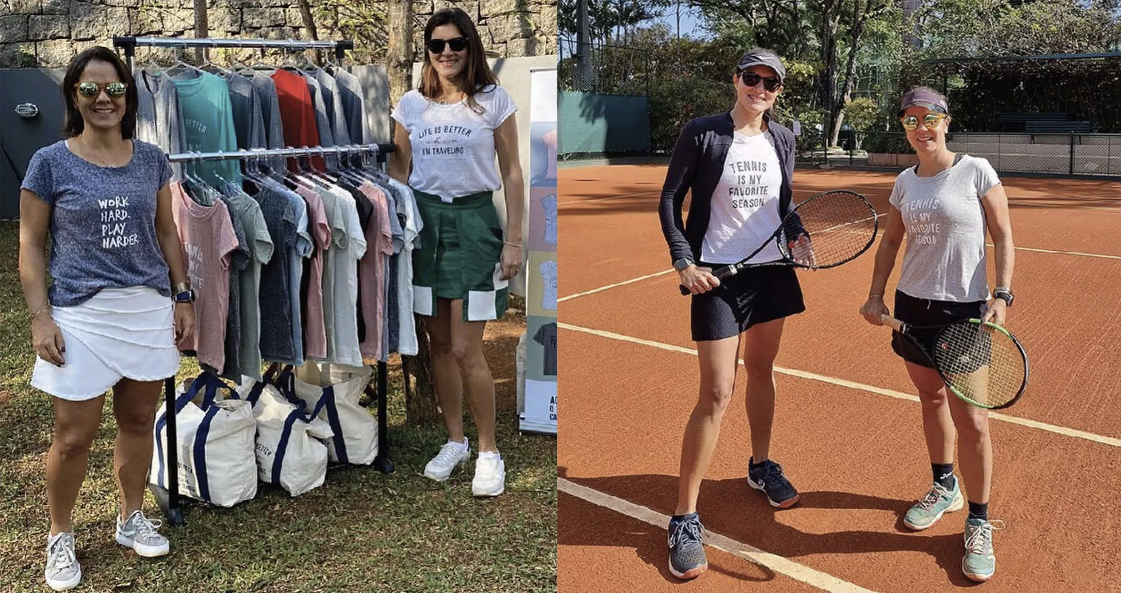 A ideia inicial era estampar uma frase relacionada apenas ao esporte que tanto amam: “Life is better when I’m playing tennis”.
