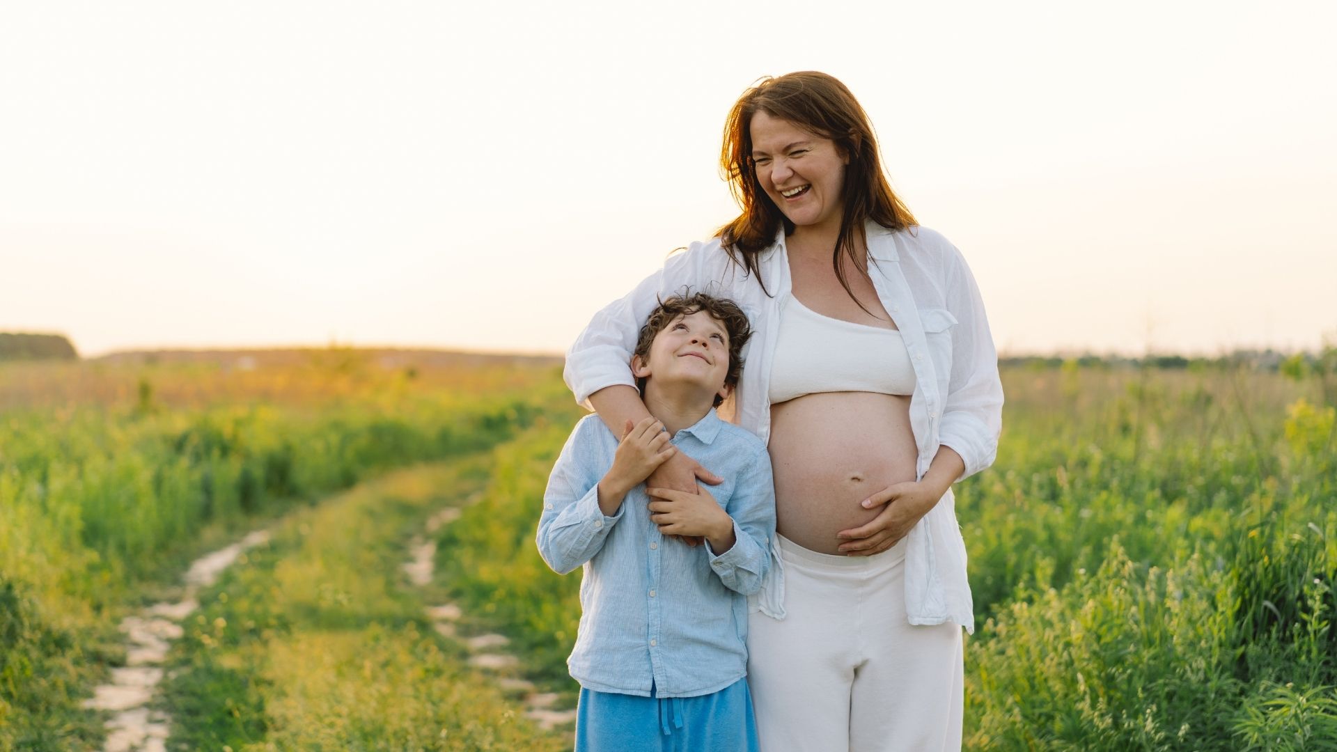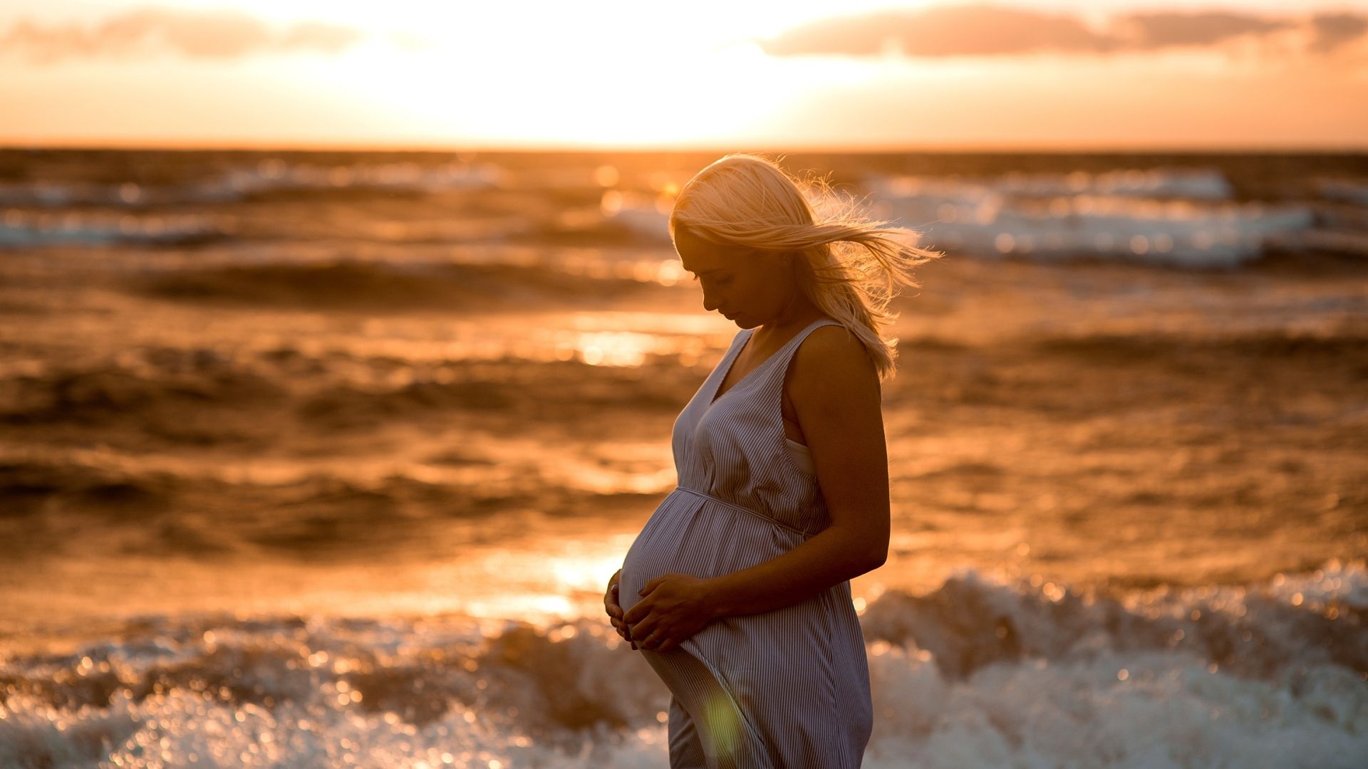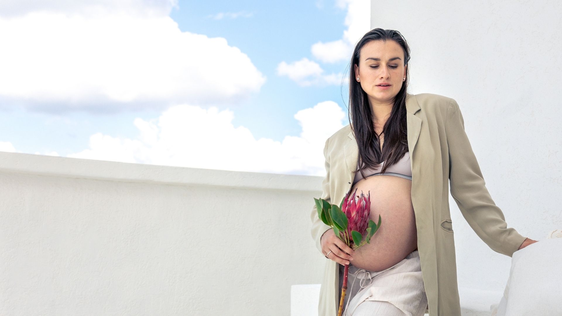 - Foto 1: Mãe sentada com a mão na barriga de 9 meses (não aparece o rosto, o foco é na barriga).