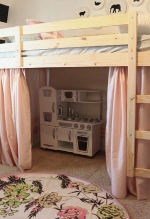 Olhem que graça a casinha de bonecas com direito a mini cozinha montada embaixo da cama. AMEI!