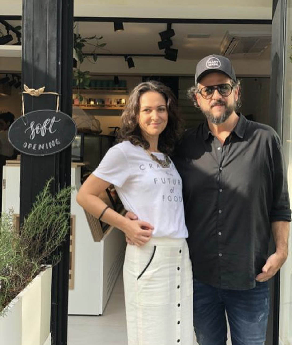 Just Real Moms – Maternidade e Veganismo – Dani e Fabio Zukerman na fachada do restaurante