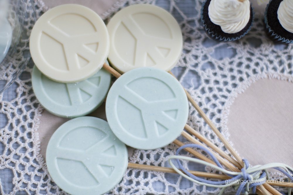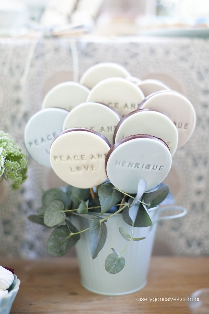 Queria algo diferente e ao mesmo tempo delicado, por ele ainda ser um bebê. Logo me veio à cabeça o tema “baby hippie/paz e amor”, a cara dele, que é muito tranquilo…